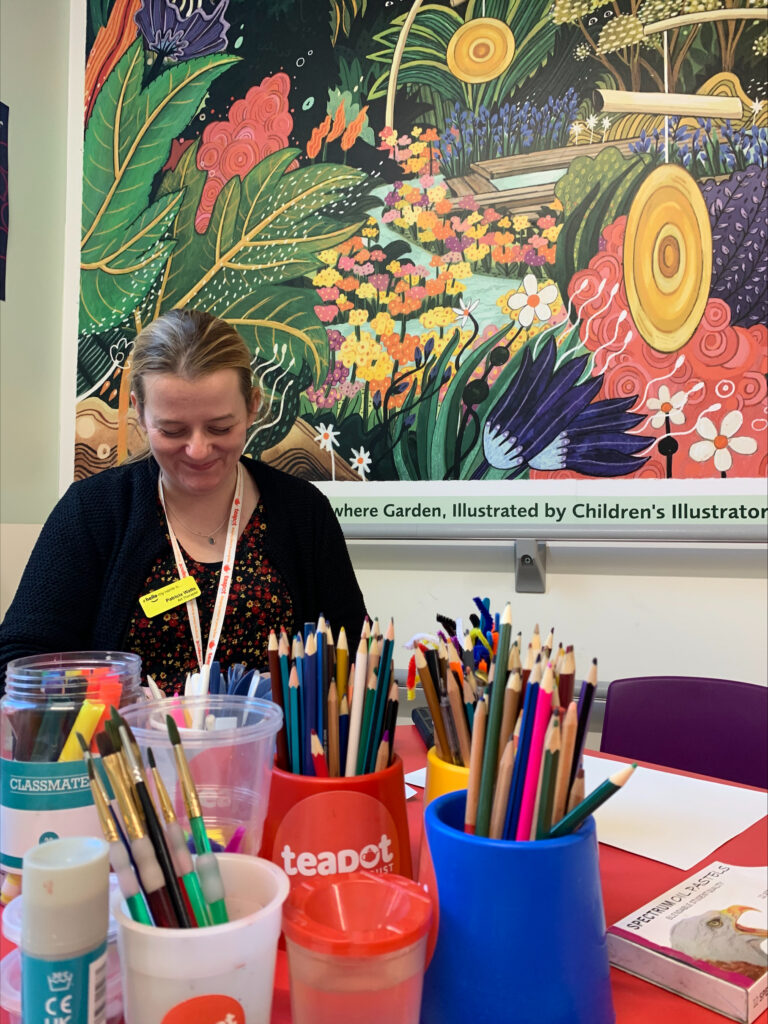 I have regular clinical supervision and supportive colleagues at both Teapot Trust and the hospital. There are revitalising spaces around the site, including the Teapot Trust Elsewhere Garden, a beautiful green area offering a quiet moment of calm. I enjoy walking between clinics, greeting colleagues, and catching up with other Teapot Trust art therapists based on site.